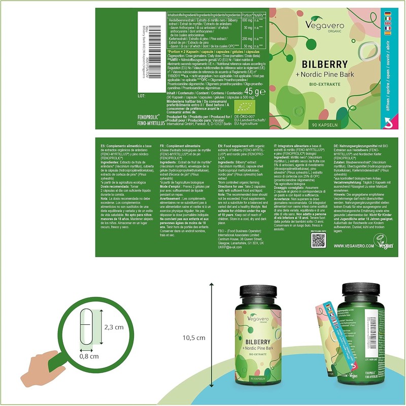 ✅ CLEAN & ADDITIVE-FREE: Each serving contains 300mg of Bilberry Extract (20:1) and 100mg of Nordic Pine Bark Extract (200:1). We ensure our product is free from additives such as magnesium stearate, commonly found in other supplements. Our formula is non-GMO, organic, vegan-friendly, and pesticide-free.