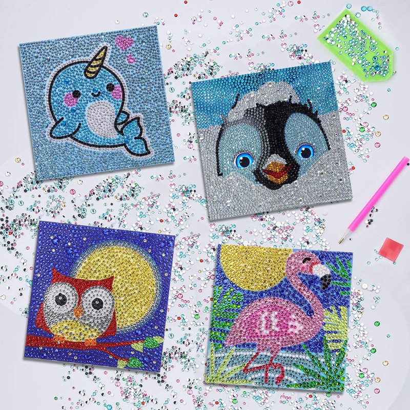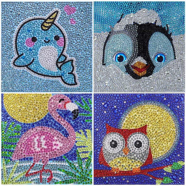 - 【Lovely Patterns for Kids】The narwhal/ penguin/ flamingo/ owl 5D diamond painting by number kit are designed for children. This is a DIY diamond painting, not a finished picture, need you to finish it by yourself.