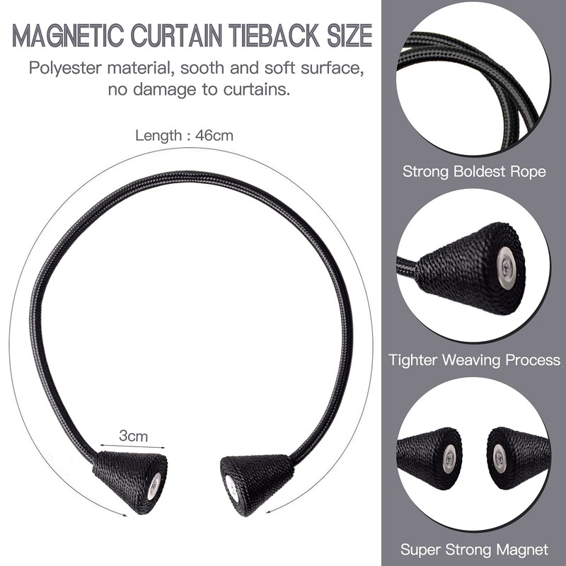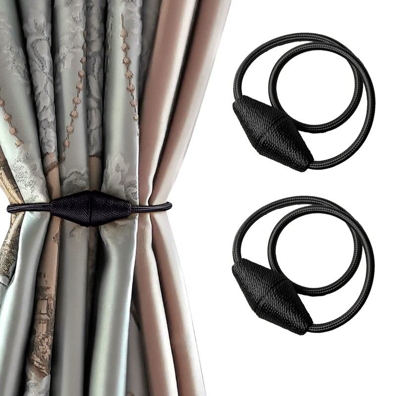 VEGCOO Magnetic Curtain Tie Backs, 1 Pair Curtain Rope Holdbacks in Black, Window Curtain Buckles Window Tie Back Holders for Thin or Thick Home Office Hotel Window Decorative