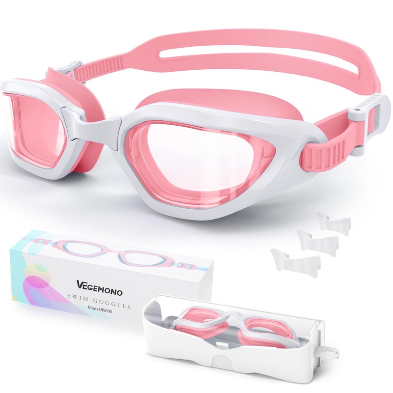 Vegemono Kids Swim Goggles in Candy Dual-Tone, Adjustable Nose Pads & Soft Silicone for Leak-proof Fit Across Ages(6-14), Clear Wide Vision & Anti-Fog &Anti-UV, With Fashion Hard Protective Case