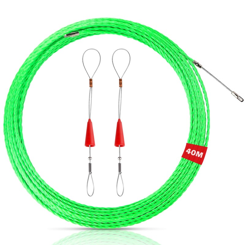 Vegena 40 m Cable Retraction Spring Retractable Spiral Cable Pulling Aid with 2 Guide Springs, Cable Pulling Aid Pull Wire for Empty Pipes Retracting Tape Diameter 4 mm for Cable Laying