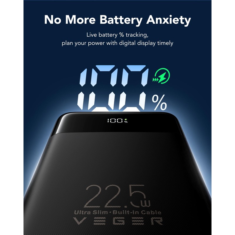 - VEGER Portable Charger with Built in Cables, 10000mah Power Bank with Cords Wires