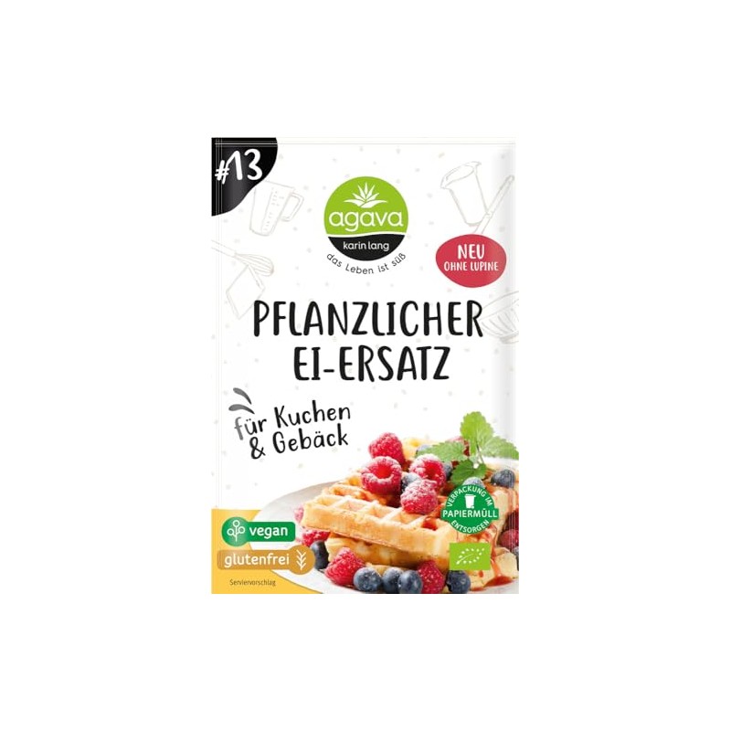 5 g (1 teaspoon) + 50 ml sparkling water corresponds to a whole egg. Add this mixture to the desired dough.