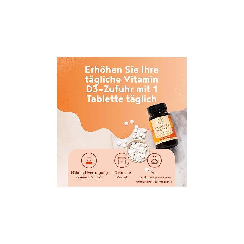 Vegetarian Vitamin D3 Tablets - with 25 μg (1000 IU) and Bioavailability - Sun Vitamin for Bones, Muscles and Immune System. 400 Tablets Alpha Foods