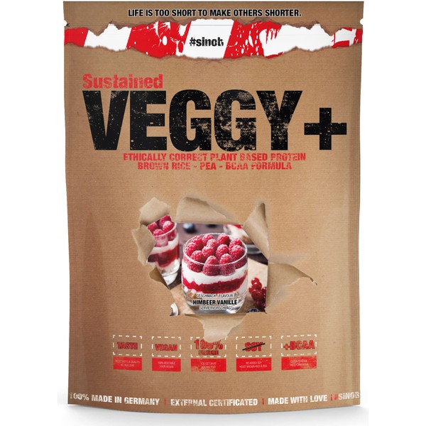Veggy+ Vegan Protein Powder (Vanilla Raspberry) from Rice and Pea Protein Powder with Vegan BCAAs 1 x 900 g Protein Powder for Vegans Multi-Component Protein Powder 70% Protein