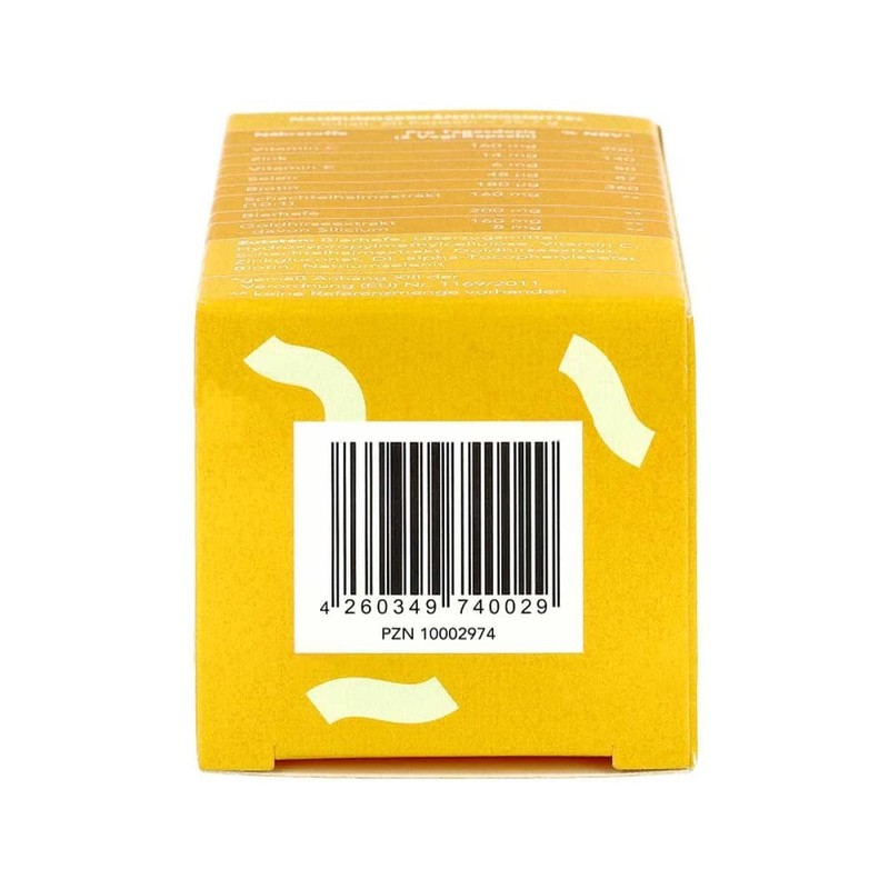 Ingredients: brewer's yeast, coating agent hydroxypropylmethylcellulose, vitamin C, horsetail extract, golden millet extract, zinc gluconate, DL-alpha-tocopheryl acetate, biotin, sodium selenite.