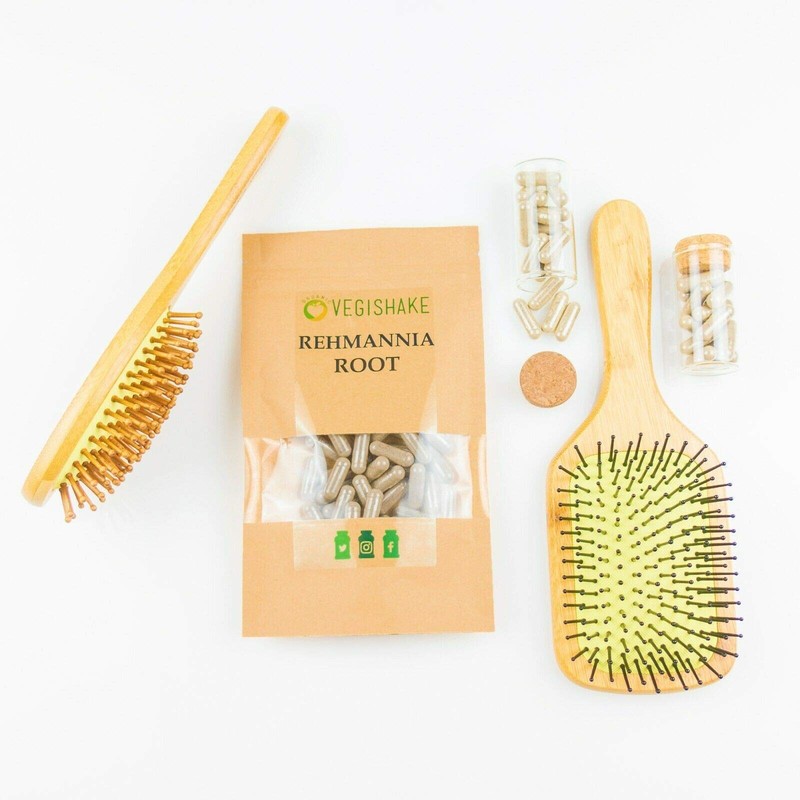 vegishake Rehmannia Root HPMC Capsules 980mg Prevent Grey Hairs Maintain Hair Colour Health Fatigue Kidney Adrenal Glands Vegan Halal Kosher (60 Capsules)