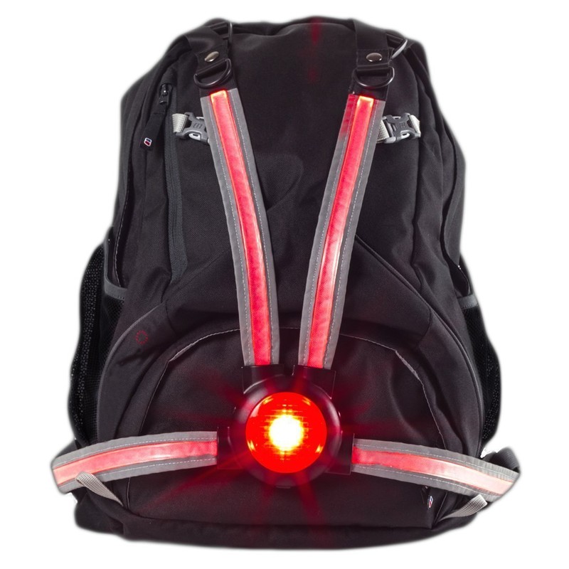 - Worn over shoulder without a backpack; Micro USB rechargeable