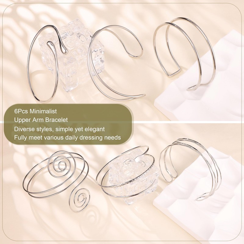 - Minimalist Upper Arm Cuff Set:The set includes 6 different styles and shapes of coil arm cuff bracelets, featuring layered arm cuff, vortex arm cuff bangle, spiral arm cuff bracelet, wide band arm cuff armlet, etc. With minimalist design, classic and fashionable, free combination, fully meet your daily dressing needs