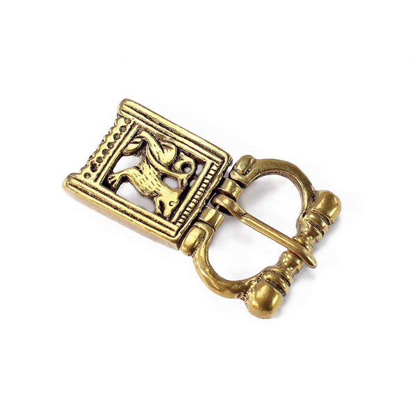 Buckle made according to the model of late medieval findings with wolf motif on the rivet plate. Fits in style with VM001991 end fitting