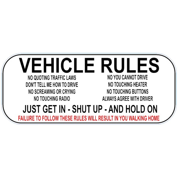 Vehicle Rules Dashboard Bumper Funny Car Sticker/Decal 5 x 2 Inches