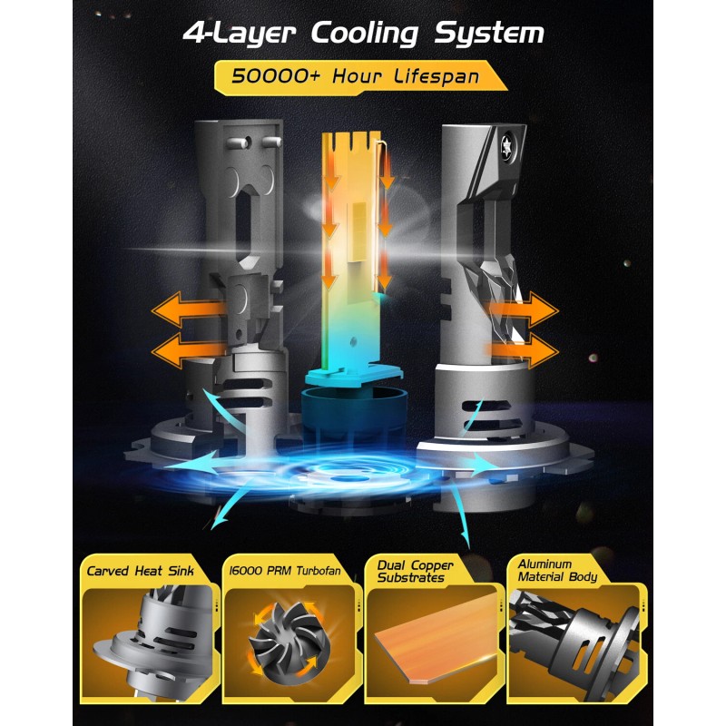 【Cooling System Over 60,000 Hours Lifespan】: LOUVEROLA Led H7-Take Full Body Aluminum Material+ Dual Copper Substrates To Quickly Cooling the Heat Chips; 16000RPM Powerful Turbofan and Carved Heat Sink Design that Operate as Low as -40°F and as High as +150°F Which Ensures H7 Bulb Work Steady and Continuously for Over 60,000 Hours