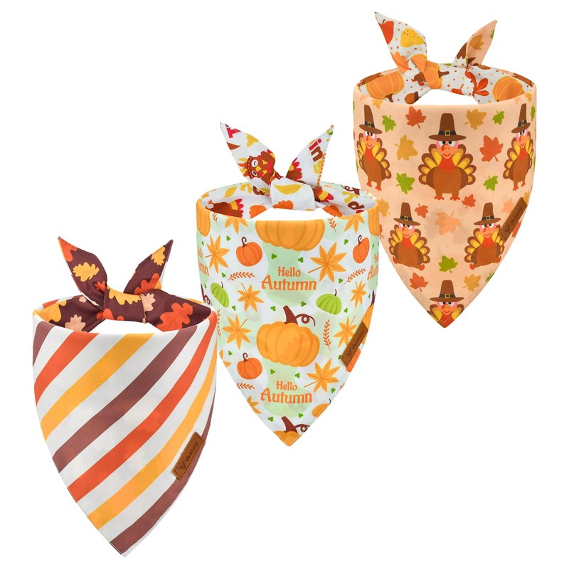- Autumn Themed Patterns: The puppy bandanas are printed with pumpkins, leafs, turkeys, and stripes, exude the ambiance of harvest and thanksgiving;