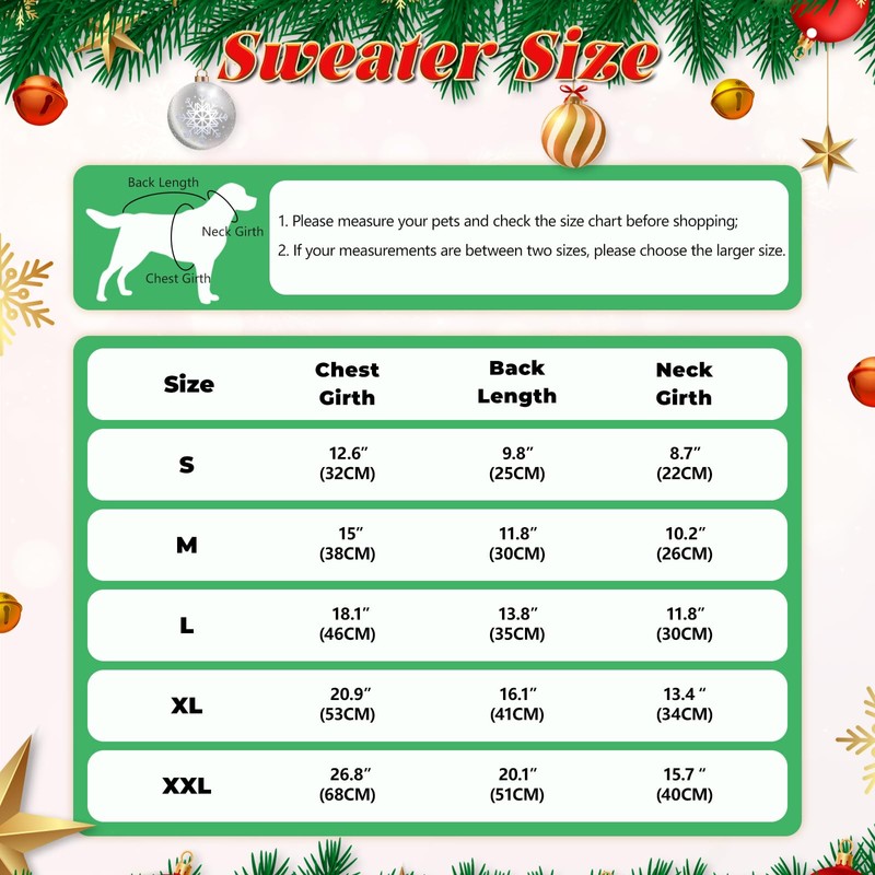 - 【5 Sizes in Available】The Christmas dog knitwear is suitable for small to medium sized dogs. L: Body Length is 13.8" / 35cm, Chest Girth is 18.1" / 46cm, Neck Girth is 11.8" / 30cm. Please choose a size up if your measurements fall between sizes.