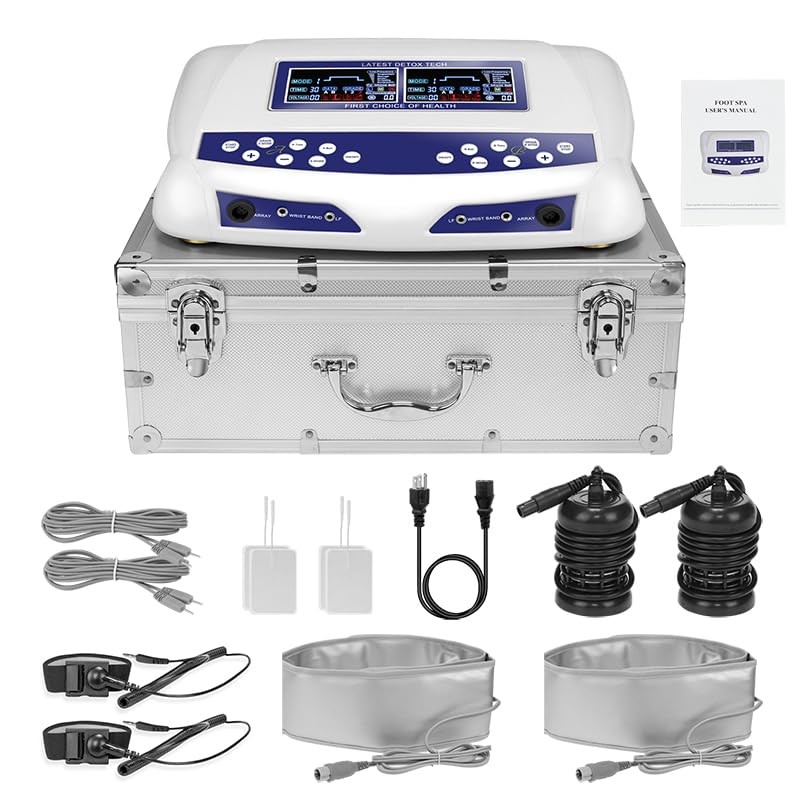 - CompletComplete Foot Bath System: The package will come with a main control unit, 2 arrays, 2 waist belts, 2 waist straps, foot basin connectors, and a durable aluminum carrying case,including the everything you need for a professional ionic foot spa.