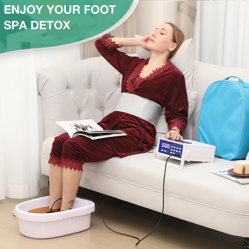 - 【Professional Foot Detox Machine 】- ionic detoxification system with 2 detox function: detox foot spa and far infrared waistbelt mode.The detox foot spa helps with total body purification, such as holistic healer, body arthritis, lyme disease, and the far infrared waistbelt is a way to promotes blood circulation and weight loss