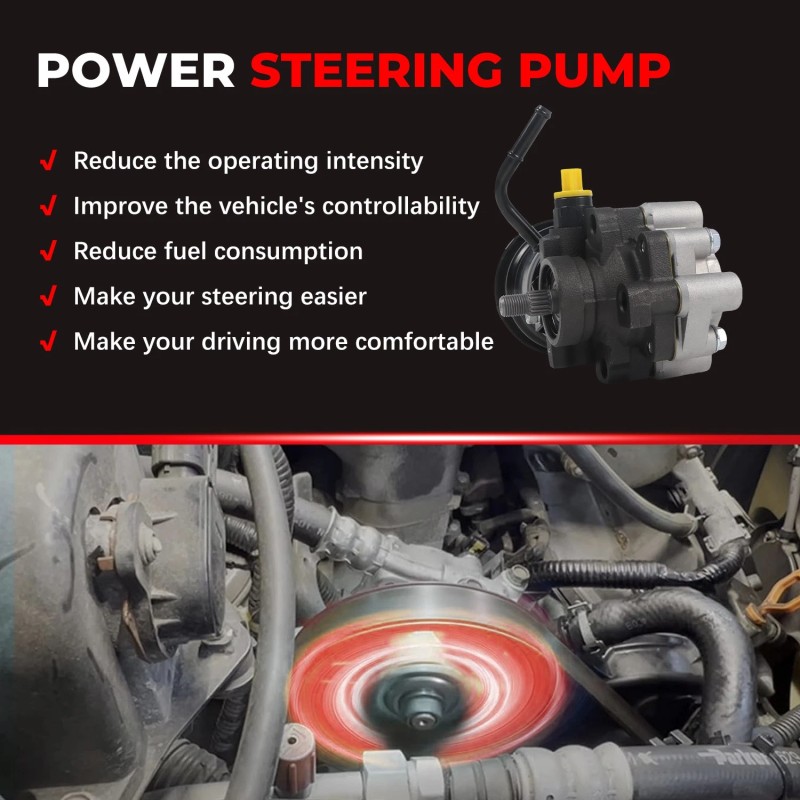 If you have symptoms like whining noise while turning the wheel, steering wheel slow to respond, stiff steering wheel, or squealing & groaning noises when the vehicle starts, and you might need to replace your old Power Steering Pump with this one.