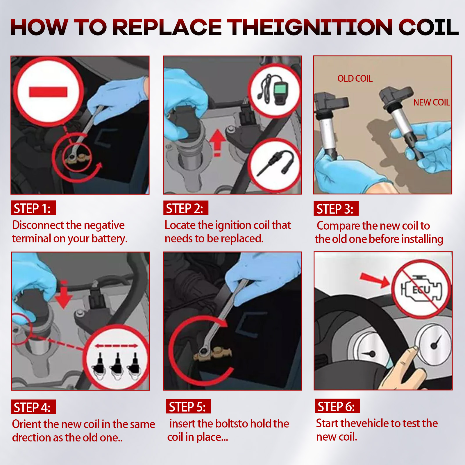 2. Pay attention to the cleanliness of the entire operation, must wipe the ignition coil around the dust and oil, if into the combustion chamber, will have serious adverse effects, try to wear gloves to operate.