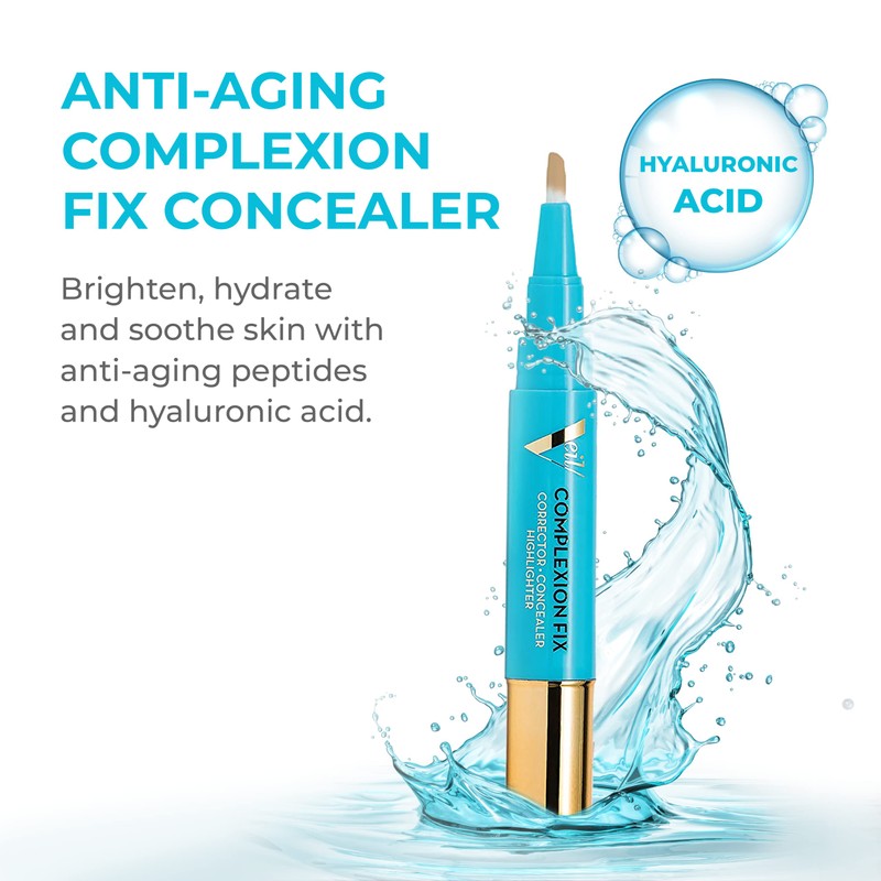 The perfect fusion of skincare and makeup, Veil Cosmetics Complexion Fix Concealer pen provides versatile coverage and gives your skin a more youthful, rejuvenated appearance. With buildable sheer to medium coverage, you can layer or simply pat with your fingertips to create a more natural look. Conceal blemishes, and redness with a concealer shade that matches your natural skin tone. Add definition to your look with a highlighter shade that is one shade lighter than your concealer shade. Neutralize under-eye dark circles and sunspots by choosing one shade deeper than your concealer. Available in 15 shades ranging from Porcelain, Light, Medium, Tan, and Deep with soft pink, neutral or gold undertones. How to Sanitize - Once a week, spray a small amount of alcohol (70%) onto a tissue and gently rub against the brush tip to keep it clean.