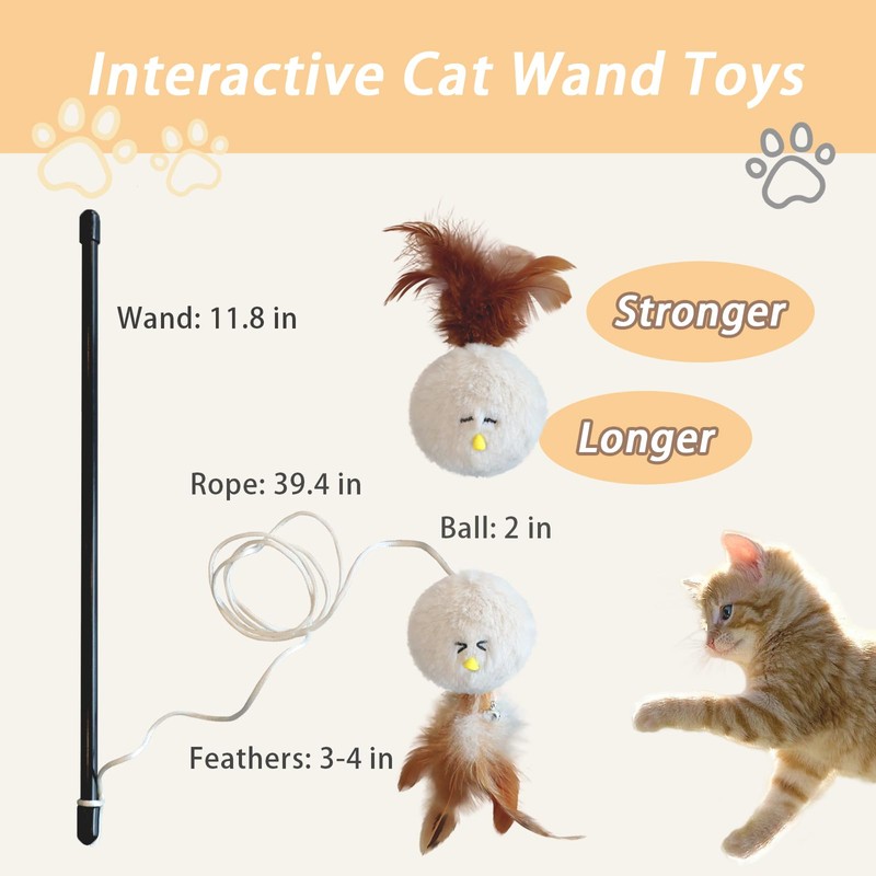 - Premium Featherballs cat toy: Crafted with thick, durable plush. Features stimulating feathers, a jingle bell,cute bird faces & irresistible catnip. Perfect for interactive play with the wand or solo batting fun!