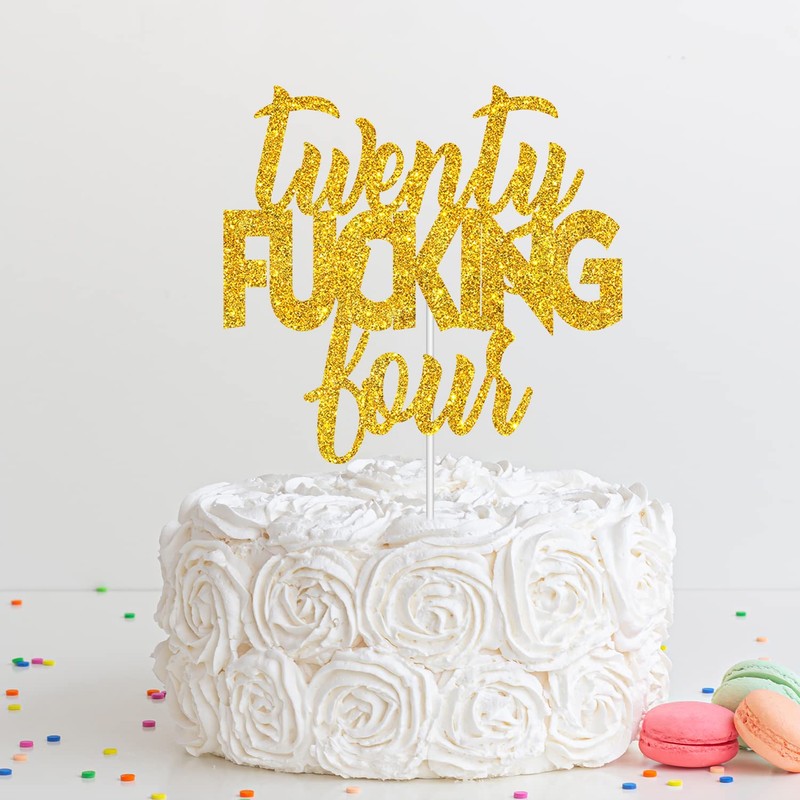 - Perfecto para fiestas de cumpleaños 24, aniversario de boda, aniversario de empresa u otras decoraciones de fiesta para celebraciones de 24 aniversarios. Y viste tu pastel con esta divertida decoración para tartas "Twenty Fuxking Four", más atractiva y capaz de crear un ambiente alegre para tu fiesta. Además, se puede utilizar como un accesorio de cabina de fotos.