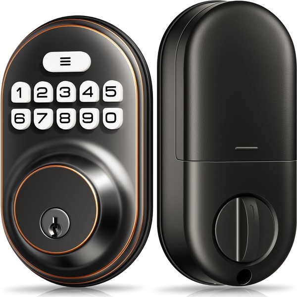 Veise Keyless Entry Door Lock, Electronic Keypad Deadbolt, Keyed Entry, Auto Lock, Anti-Peeking Password, Back Lit & Easy Installation Design, Oil Rubbed Bronze