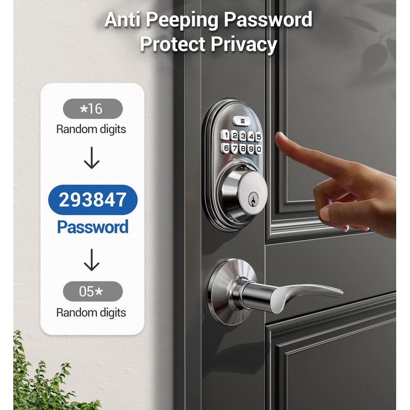 - Security Deadbolt: Our keyless door lock is a secure housekeeper, made with sturdy lock cylinder and high-quality metal structure, features IP54 water resistance, persistent durability, anti peeping passcode, low battery indicator, long lasting battery life which can ensure to work 10 times a day and last for more than 300 days.