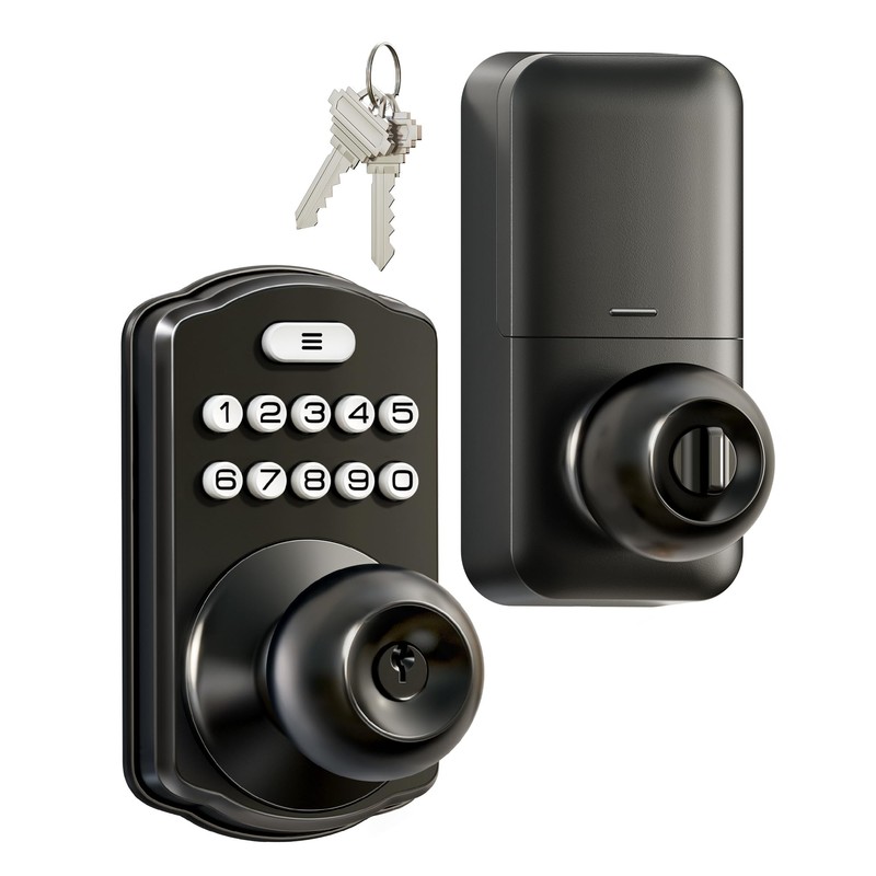 Veise Keypad Door Lock with Knob, Keyless Entry Digital Lock with Handle, Electronic Knob for Front Door, Bedroom, Easy Installation, Auto-Locking, Matte Black