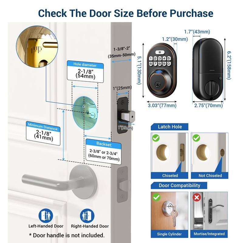 - Easy to Install: Just with a screwdriver, the door lock will be easily installed and program all by yourself in several minutes, compatible with all American standard left and right handed doors