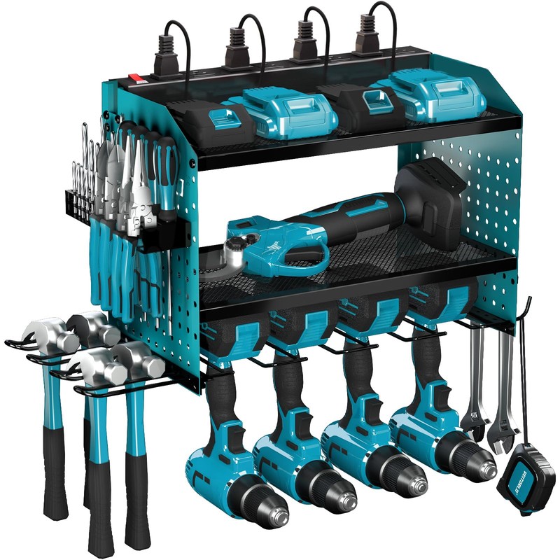 - Efficient Charging Station: Keep your tools ready to go with our integrated power tool organizer wall mount, featuring 8 AC outlets with overload protection. Charge multiple devices simultaneously, boosting your work efficiency