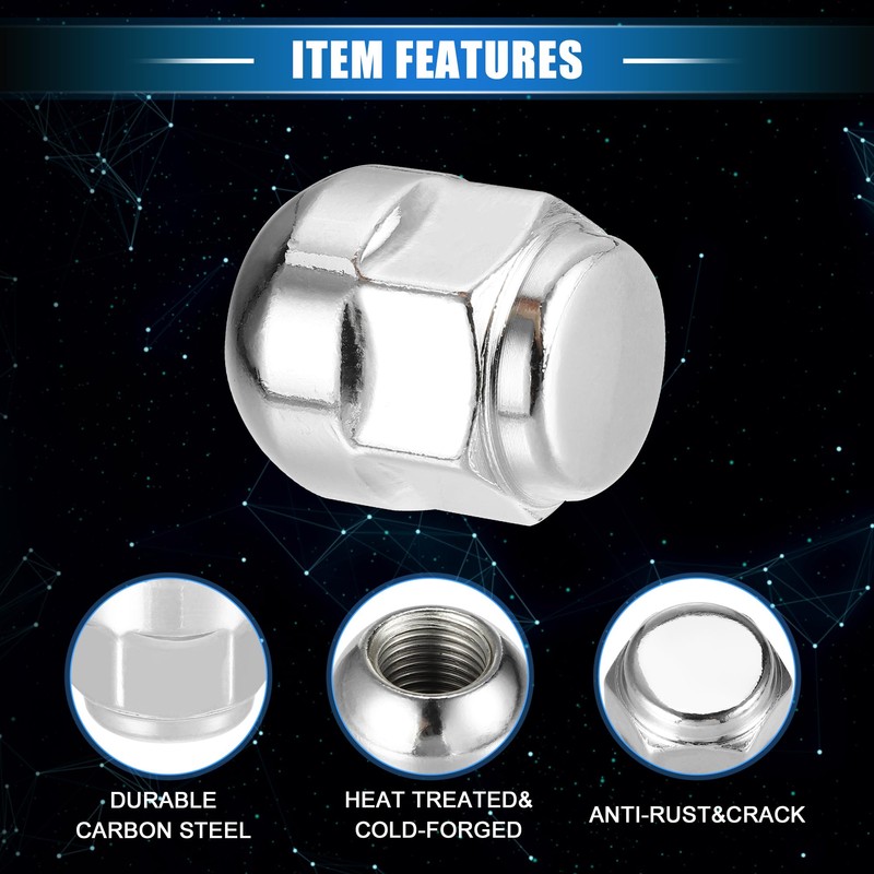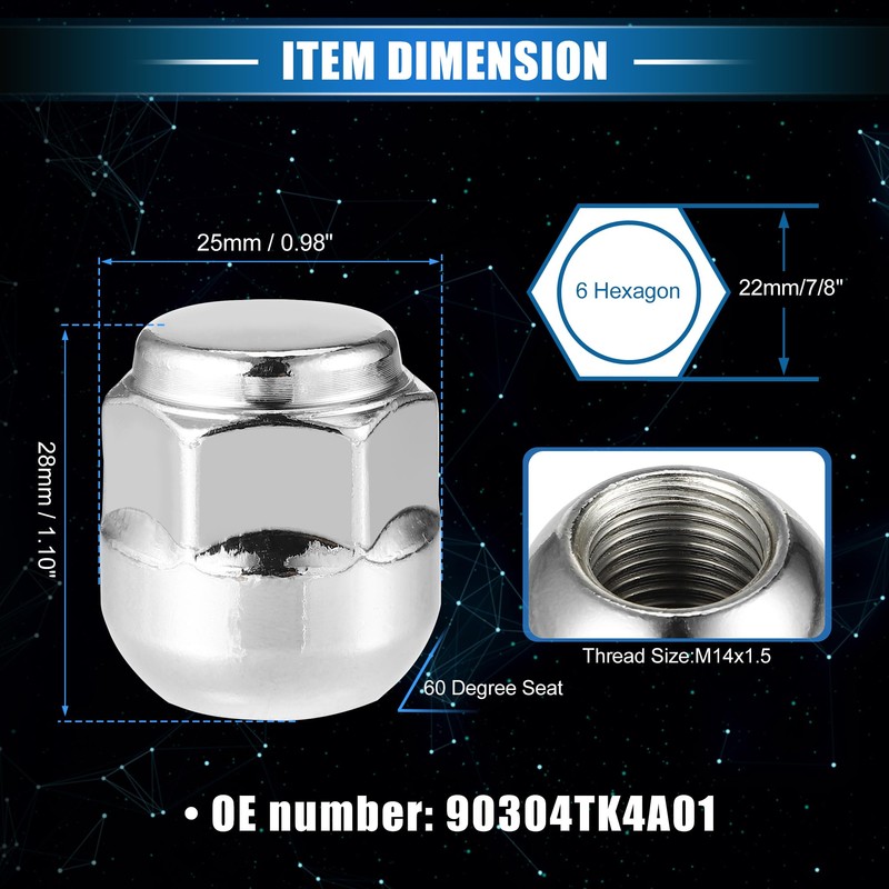- Special features: these M14 x 1.2, 1.10 inch long, 7/8 inch (22 mm) hex wheel nuts made of durable cold-forged and heat-treated carbon steel, rust-proof, corrosion-resistant and durable.