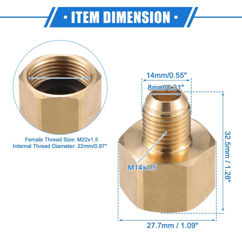 VekAuto Pressure Washer Connector, M22x1.5 to 8mm M14x1.5 Male and Female Adapter Brass Screw Hose Connector Universal for Pressure Washer Quick Connect Brass Copper Tone Auto Accessories