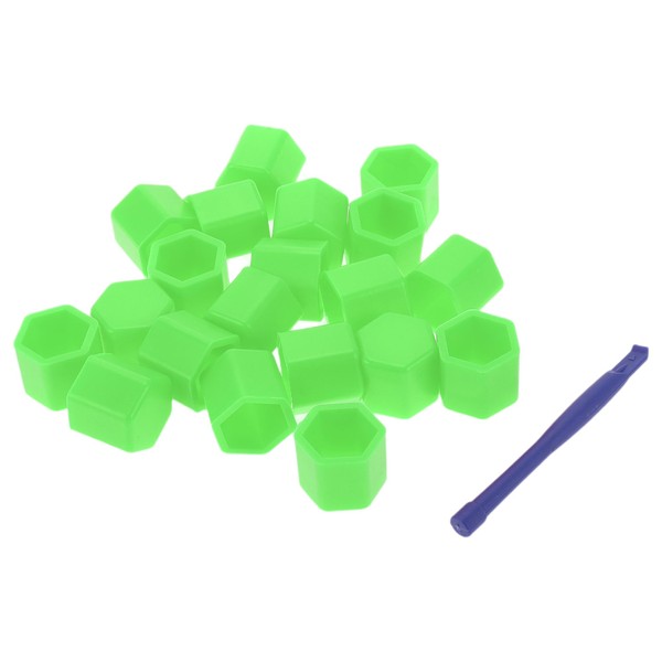 VekAuto Radmutterbolzen 21mm Felgen Reifenmutter Schrauben Staubschutzkappe Abdeckung Mutter Schutz Silikon Grün Außen mit Entfernungswerkzeug