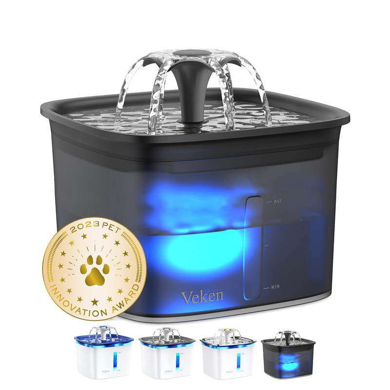 Veken 95oz/2.8L Pet Fountain, Automatic Cat Water Fountain Dog Water Dispenser with Replacement Filters for Cats, Dogs, Multiple Pets (Space Black, Plastic)