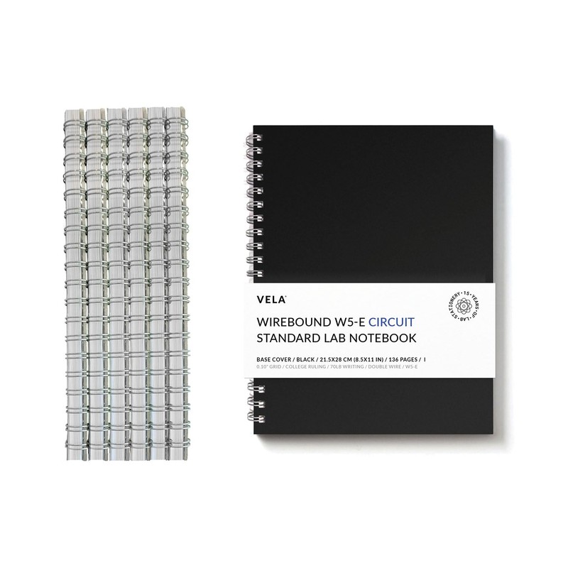 Vela Sciences W5-E Wirebound Lab Notebook, 8.5 x 11 in (21.5 x 28 cm), 128 Pages, Double Wire Looped, 70lb Heavyweight Paper (6-Pack, Ruled +)