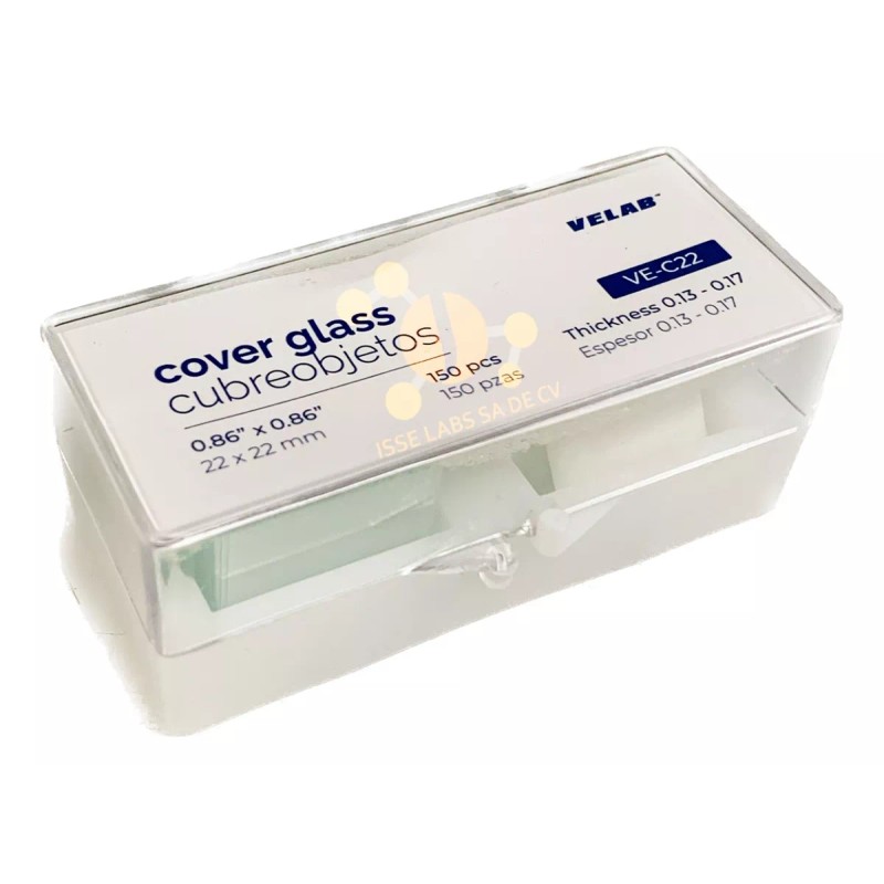 Cubreobjetos 22x22 Mm 5 Cajas Con 150 Piezas c/u (750 piezas en total) Marca Velab