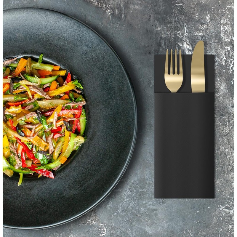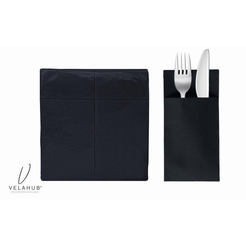 VelaHub Soft Point 50 Cutlery Napkins, High-Quality Disposable Napkins, 39 x 38 cm, Black