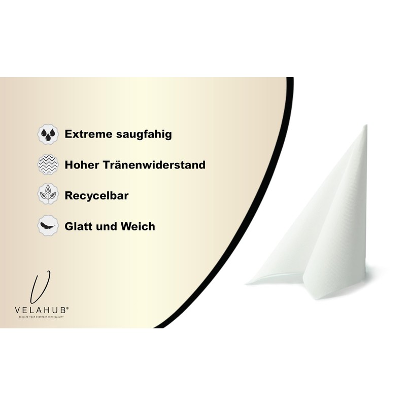 VelaHub Soft Point 50 High-Quality Disposable Napkin 38 x 38 cm 1/4 Fold White