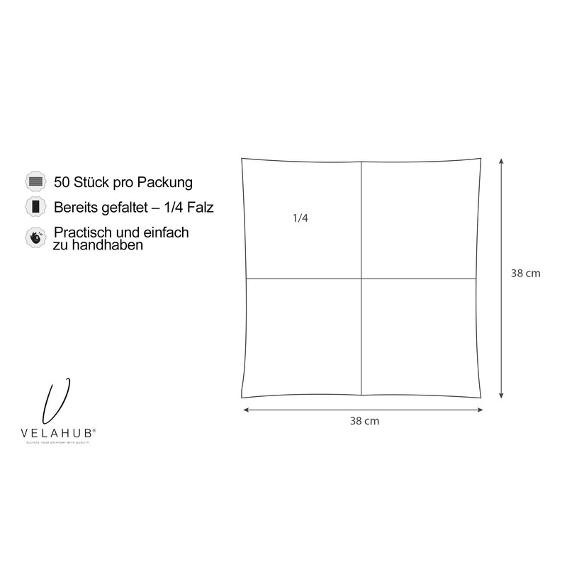 - Size – The size of the napkin is 38 x 38 cm, the folded napkin is approx. 19 x 19 cm. One package contains 50 napkins.