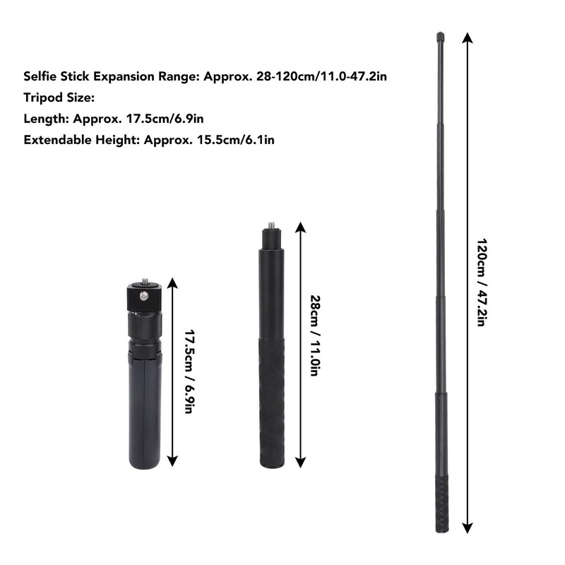 Selfie Stick Expansion Range: Approx. 28‑120cm/11.0‑47.2in
