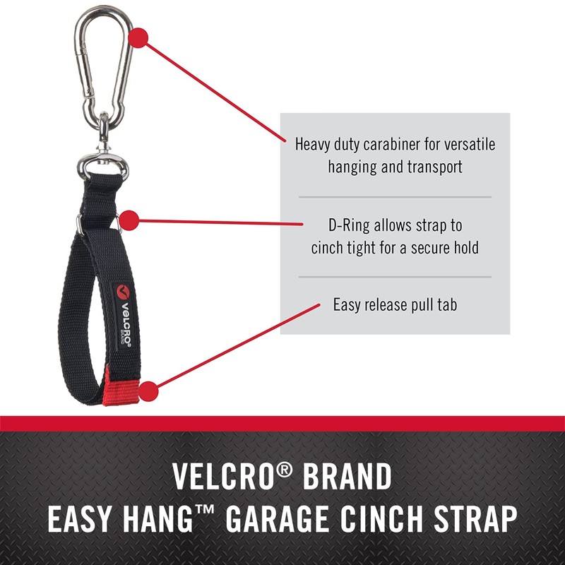 - GARAGE ORGANIZATION MADE SIMPLE: Heavy duty VELCRO Brand cinch straps are designed for efficient garage organization and storage, organizing everything from bikes and sporting equipment to ladders or hoses