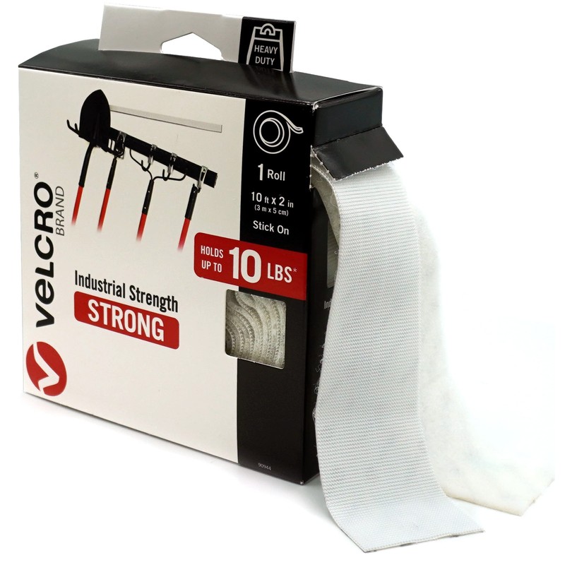 VELCRO Brand - Industrial Strength | Indoor & Outdoor Use | Superior Holding Power on Smooth Surfaces | Size 10ft x 2in | Tape, White - Pack of 1