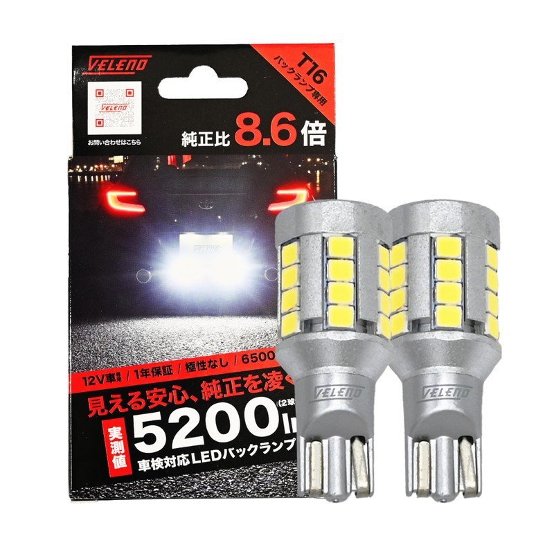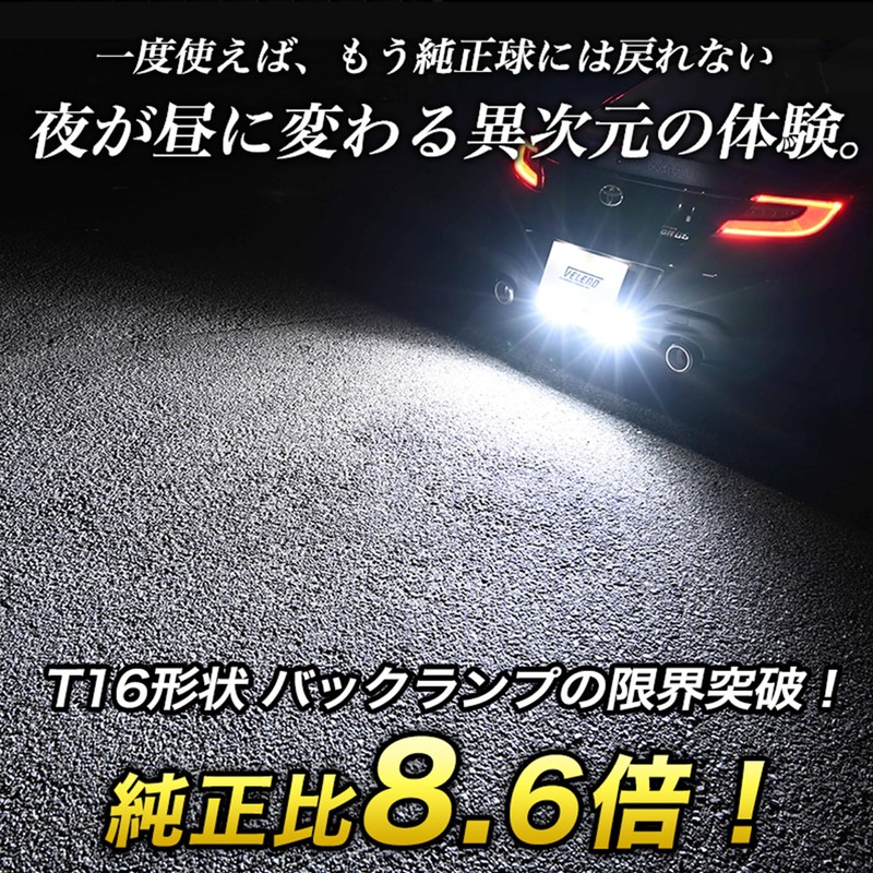 VELENO T16 LED Back Lamp, 5,200 lm, Headlight, Exceeds Headlight, Ultra Explosive Light, No Fan, Quiet Design, White, 12 V, Aftermarket, Wedge Ball, Compatible with Vehicle Inspection (T16)
