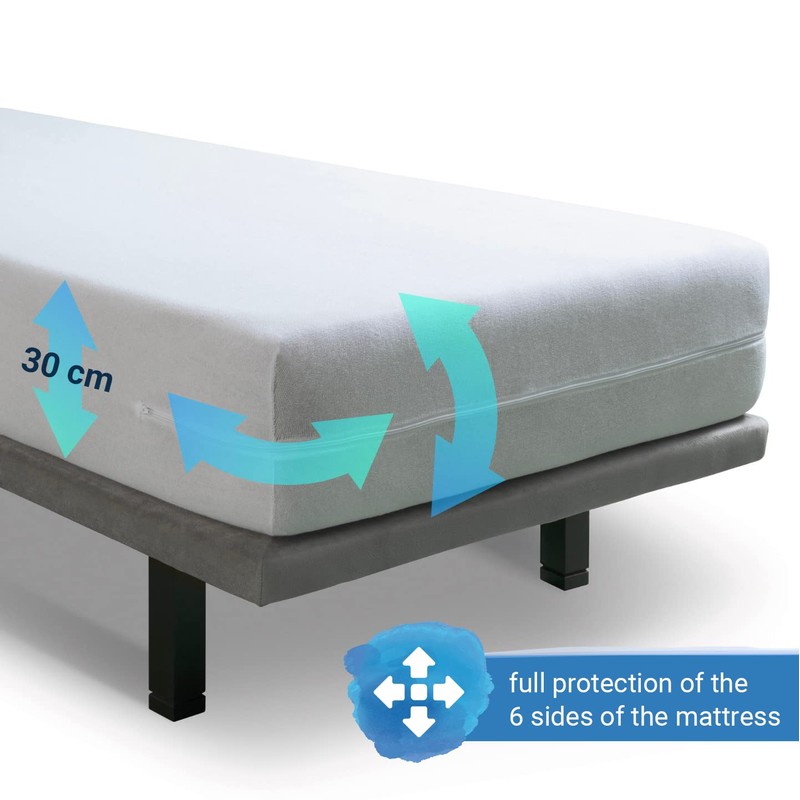 - ✅ DEEP 25 CM ELASTIC AND OEKO TEX: The enclosed mattress protector with Zip adapts perfectly to mattresses up to 25 cm high and 200 cm long. This mattress cover is free of any harmful substances as prescribed by the ÖKO-TEX Standard 100 directive.