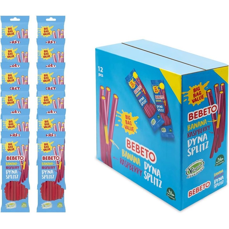 Vellomart (Bebetoo) Banana Raspberry Pencil 200g x 12 – Fruity Flavoured Candy Sticks