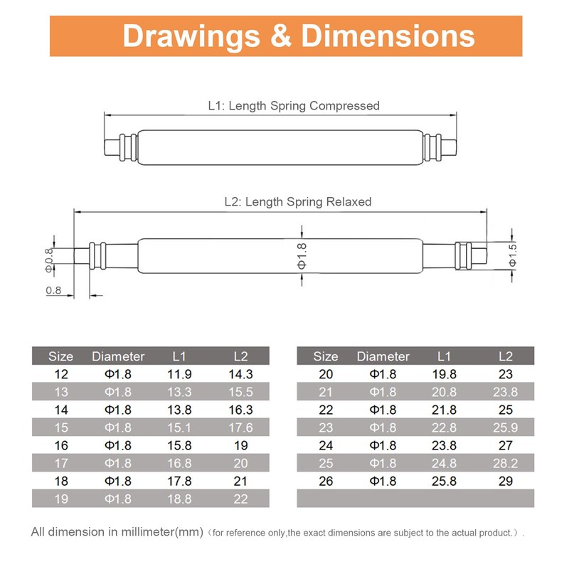 - Package contains: 4 pcs 1.5*18mm and 4 pcs 1.8*18 mm spring bars, and extra 4 pcs 1.5*16 mm & 4 pcs 1.8*20 mm spring bars as spares, and 1 spring bar removal tool.