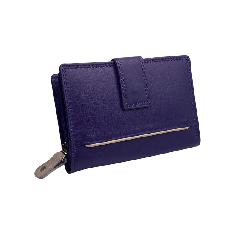 Velluci Pelle Ladies Leather Purse, Purse for Women, Women's Compact Wallet (Lilac and Beige)