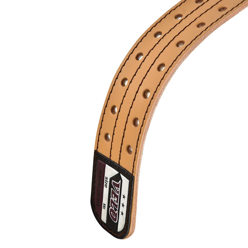 VELO Weight Lifting 4" Cow Hide Leather Gym Belt Back Support Strap Power Training Exercise Bodybuilding Belts (Beach, M 30-38)