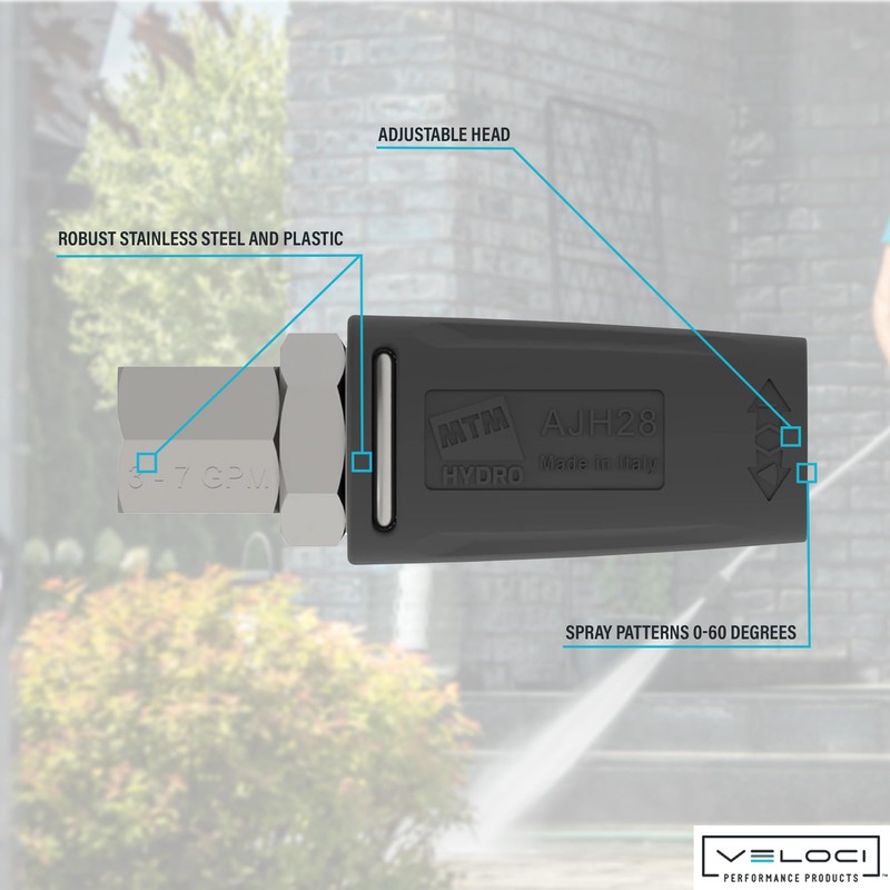 Veloci Performance AJH Soft Wash Nozzle Stainless Steel, Compatible with Downstream Units, Adjustable Pressure Washer Tips, 3 to 7 GPM Commercial Grade