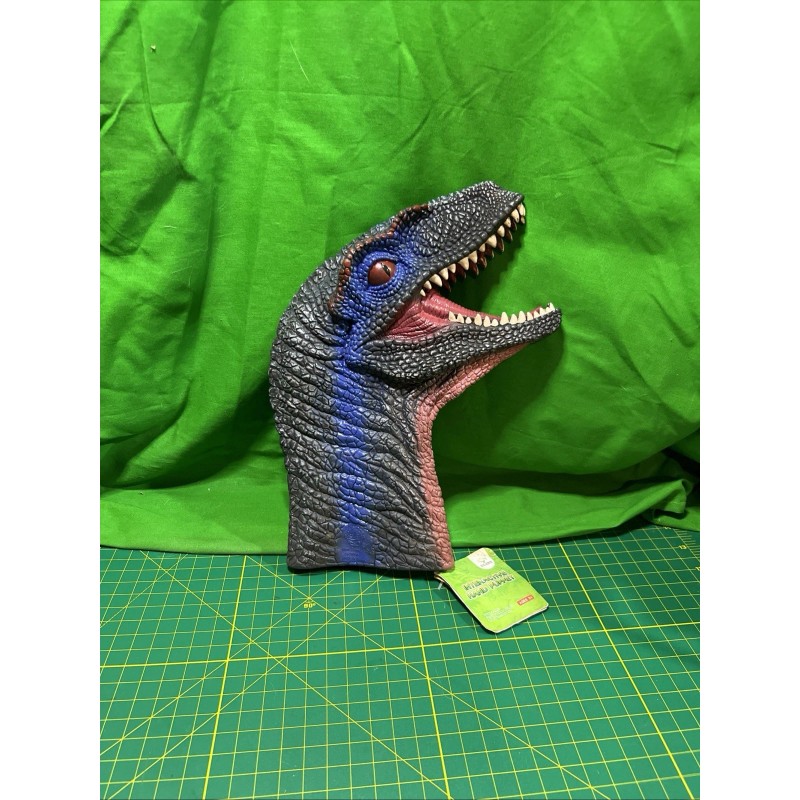 Velociraptor head childrens plastic hand puppet dinosaur